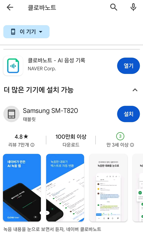 플레이스토어나 아이폰 앱스토어에서 클로바노트를 검색하여 앱을 설치합니다.