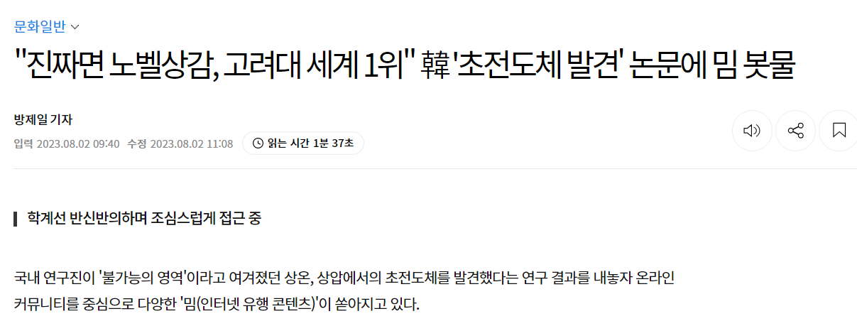 최근에 고려대학교에서 초전도체를 개발했다고 해서 전 세계적으로 많은 주목을 받고 있습니다.