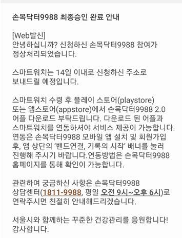 손목닥터 9988 승인 확인