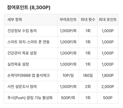 손목닥터9988 포인트 설명- 참여 포인트