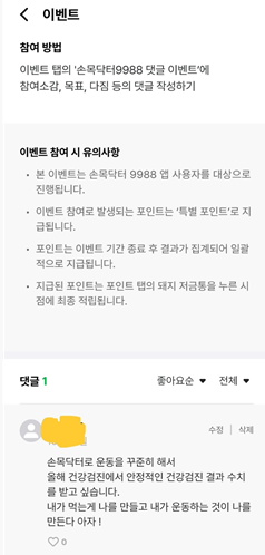 우선 댓글만 달면 되는 손목닥터9988 댓글 이벤트에 참여해 보았습니다. 댓글 쓰느라 10초 컷입니다.