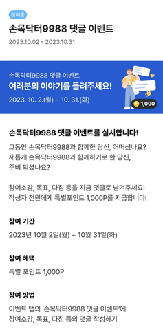 오늘은 손목닥터9988로 이벤트 참여를 통해 최소 1000포인트 이상 발생시키는 내용에 대해서 알아보려고 합니다.