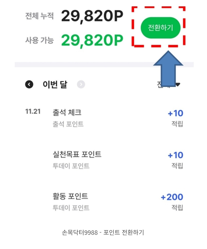 오늘은 손목닥터 9988 포인트로 포인트 전환하는 방법에 대해서 공유 드립니다 .