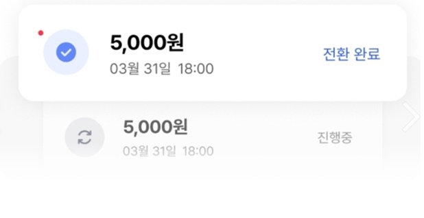 전환내역 상태가 '진행 중에서' '전환완료'로 바뀌면 서울페이머니로의 전환에 성공한 것입니다.