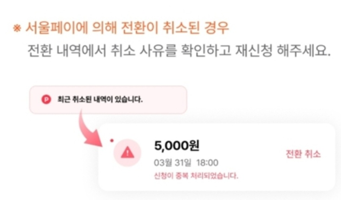 전환내역 상태가 '진행 중에서' '전환완료'로 바뀌면 서울페이머니로의 전환에 성공한 것입니다.