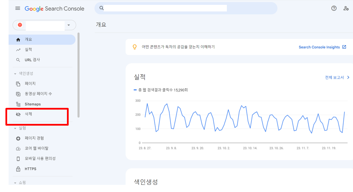 그래서 기존 구글의 기억하는 제 글에 대한 정보를 삭제해 주셔야 됩니다. 삭제는 구글 콘솔에서 진행합니다.