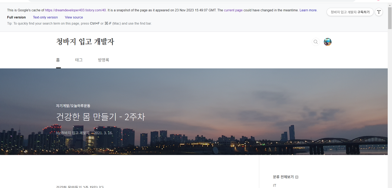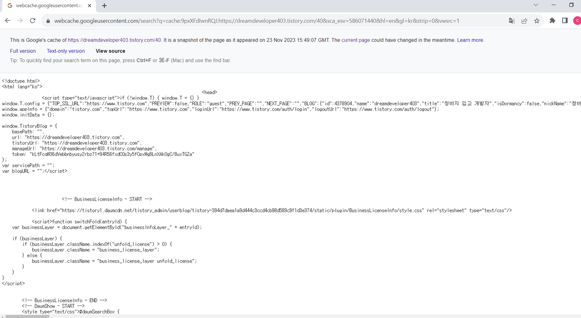 캐시된 URL삭제도 진행되면 우리가 현재 이 글을 쓰는 목적인 구글에서 기존 삭제한 글을 복원하기 위해 사용했던 이 방법도 사용할 수 없게 될 것입니다.