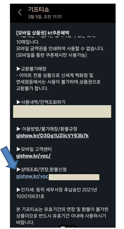 기프티쇼 연장 & 환불 문의방법 - 문자 하단 링크연결