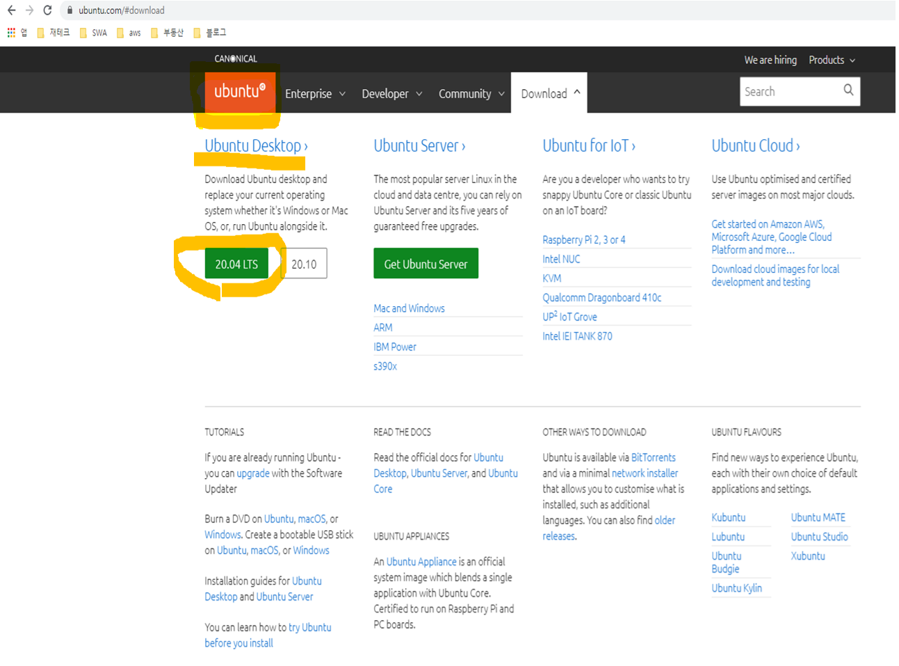 2. 우분투 사이트에서 설치용 iso 파일을 다운로드합니다.