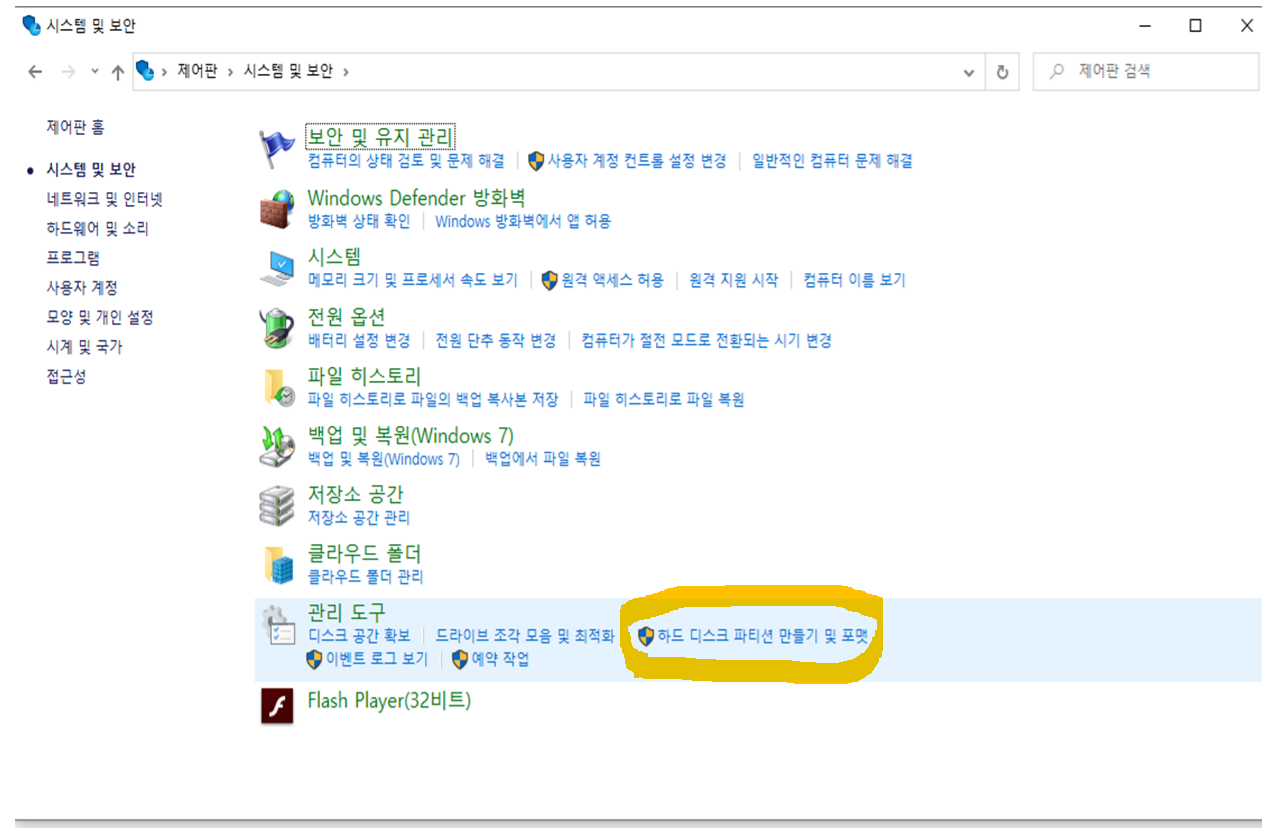 제어판으로 가서 시스템 및 보안 - 관리 도구 하드 디스크 파티션 만들기 및 포맷을 클릭합니다.