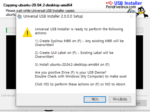 3. USB installer를 다운로드한 후 설치 파일을 실행합니다. 리눅스 다운로드하는 시간이 좀 걸리니 그동안 같이 다운 받으세요