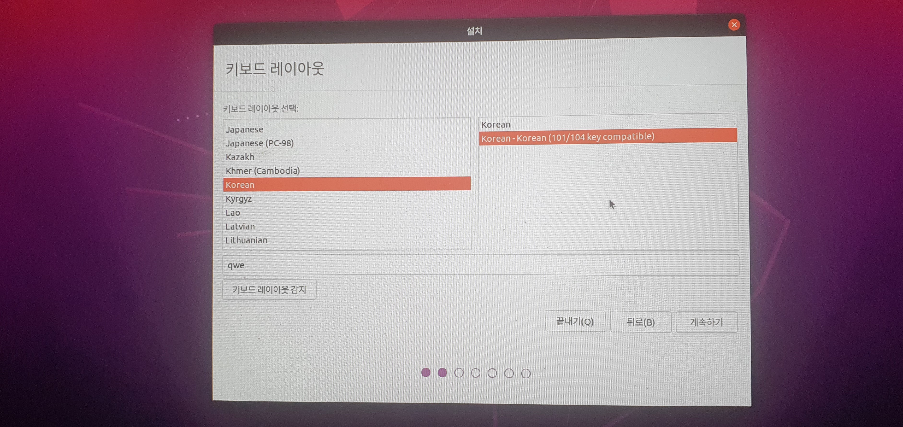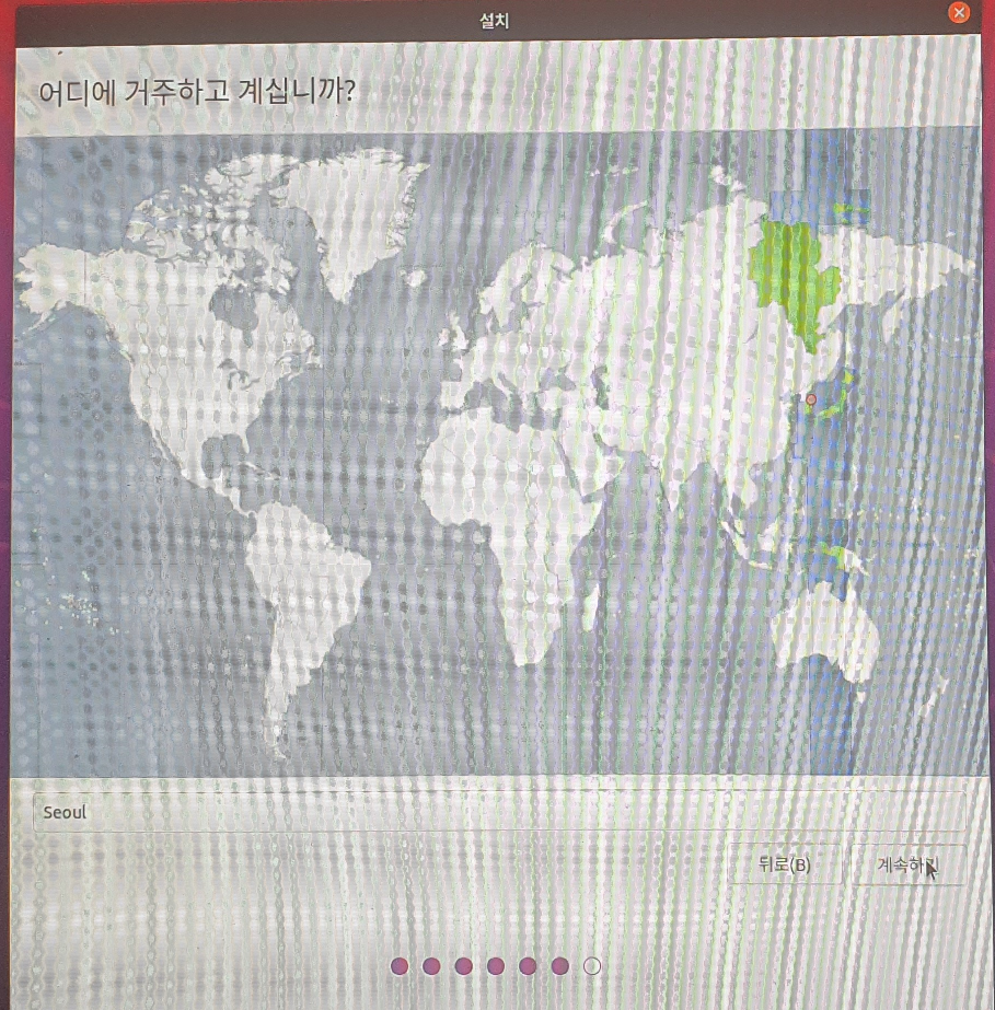 언어 선택에서 대한민국을 선택하고 Install Ubuntu 버튼을 클릭합니다.