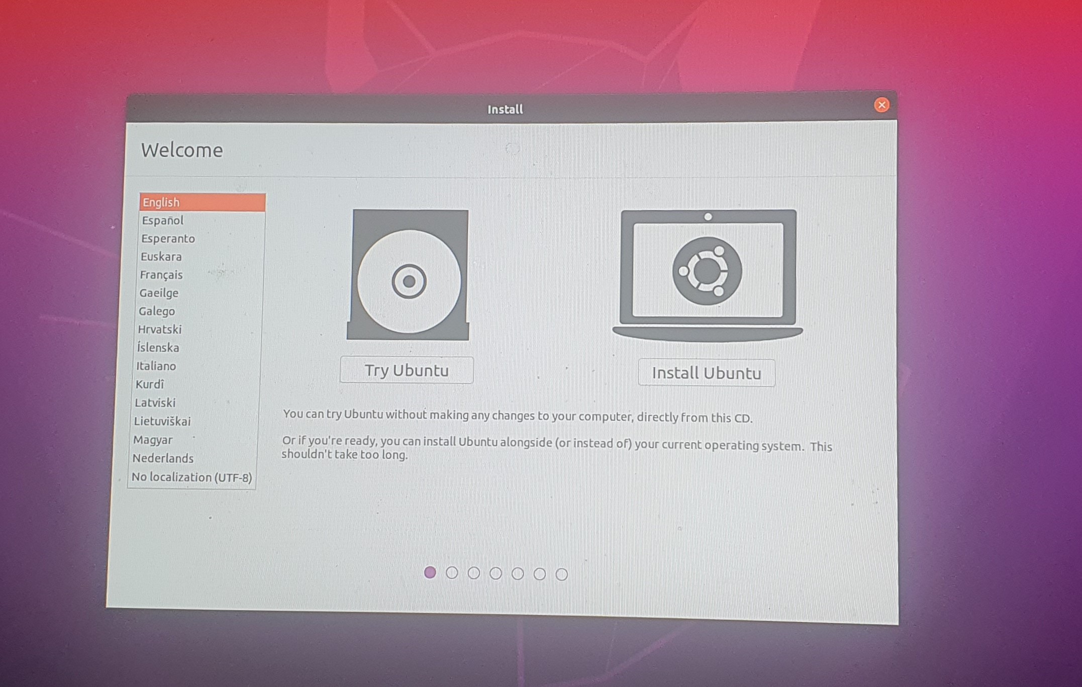 Try Ubuntu 버튼을 누르면 우분투 os를 실제 사용해 볼 수 있습니다. 여러분은 이미 리눅스의 세계에 오신 겁니다. ^^