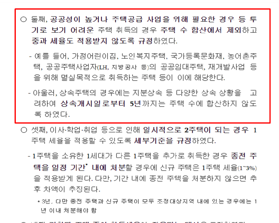 위와 같은 케이스에서는 주택 수 합산에서 제외될 수 있으니 관련업에 종사하시는 분들은 참고하시면 될 것 같습니다.