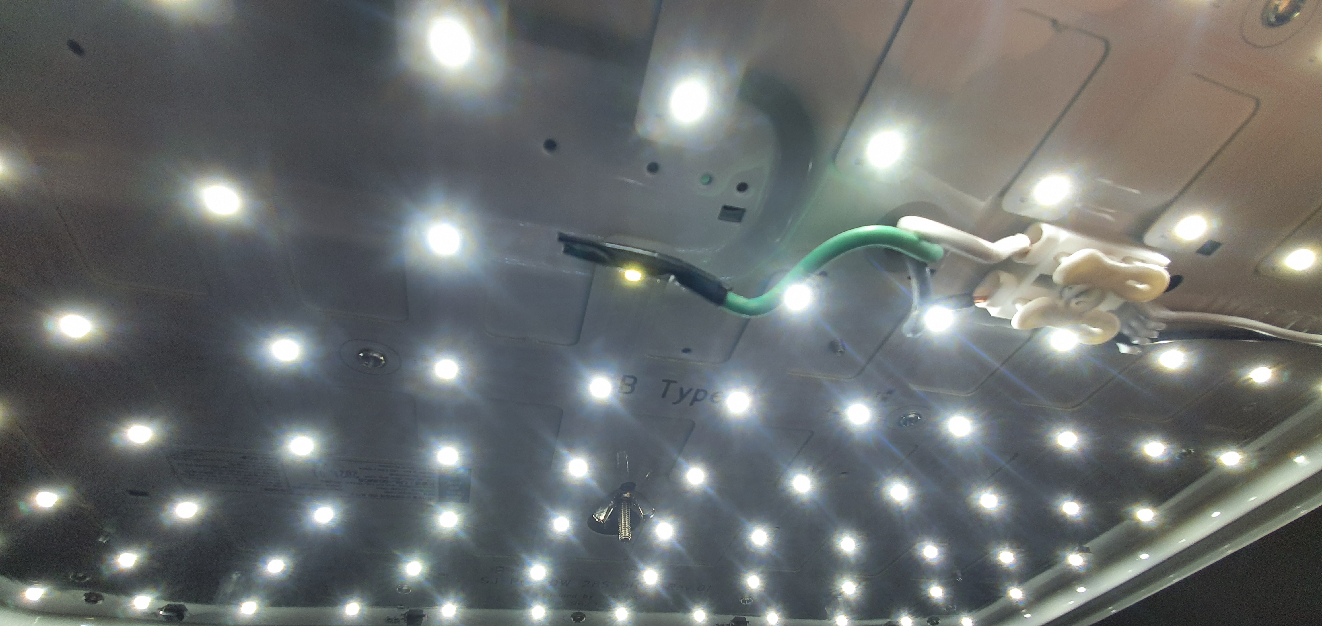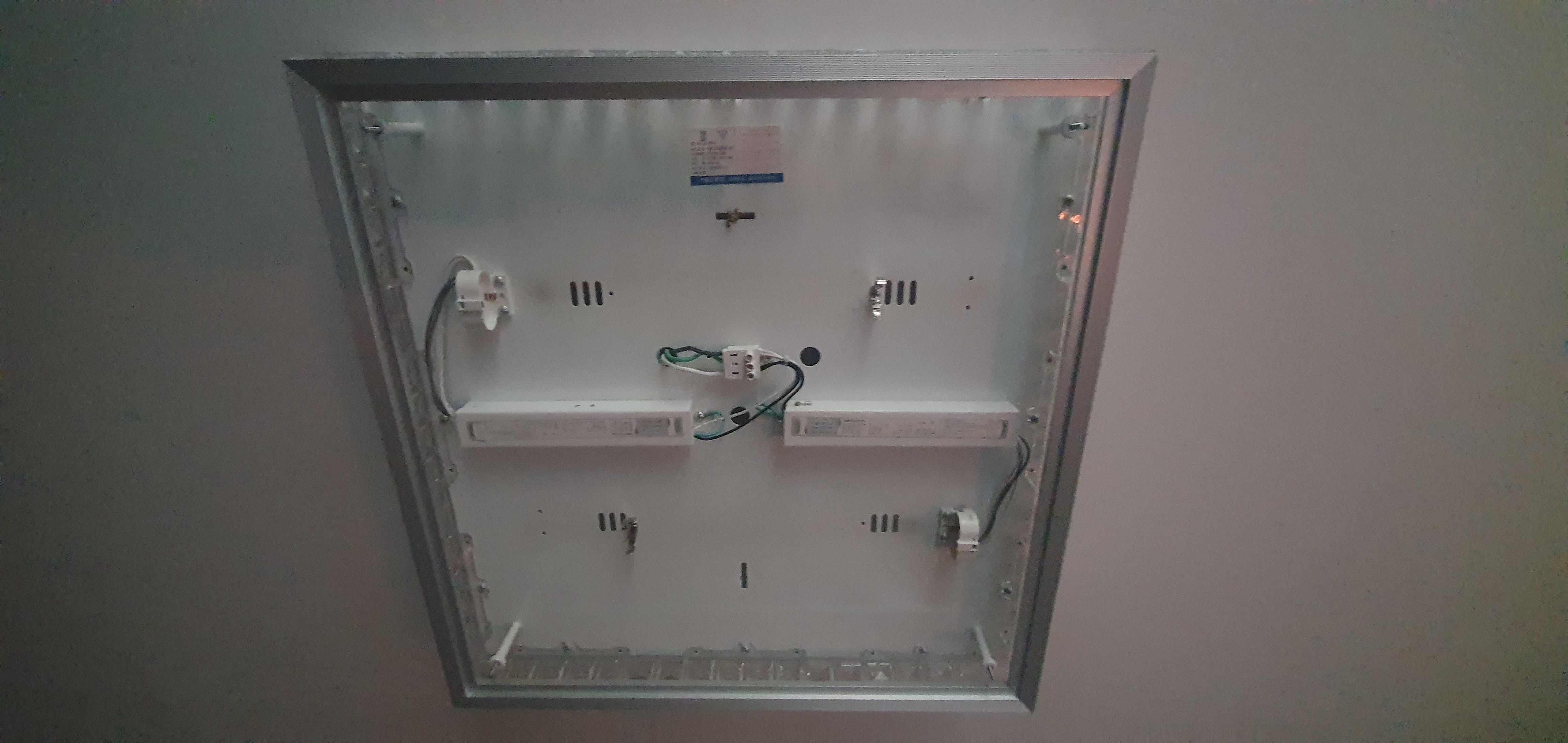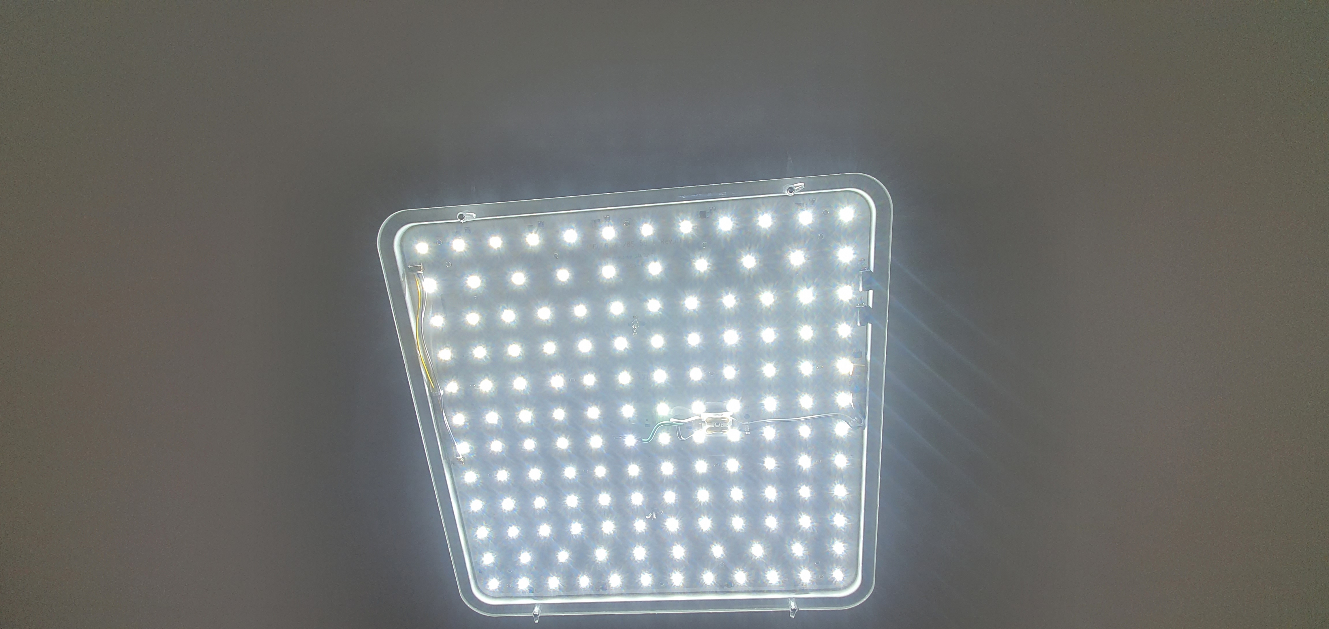 이제 새로운 전등 LED판을 천장에 넣습니다. 세 개의 선은 등 중앙의 동그란 구멍을 통해서 넣어주시면 됩니다.