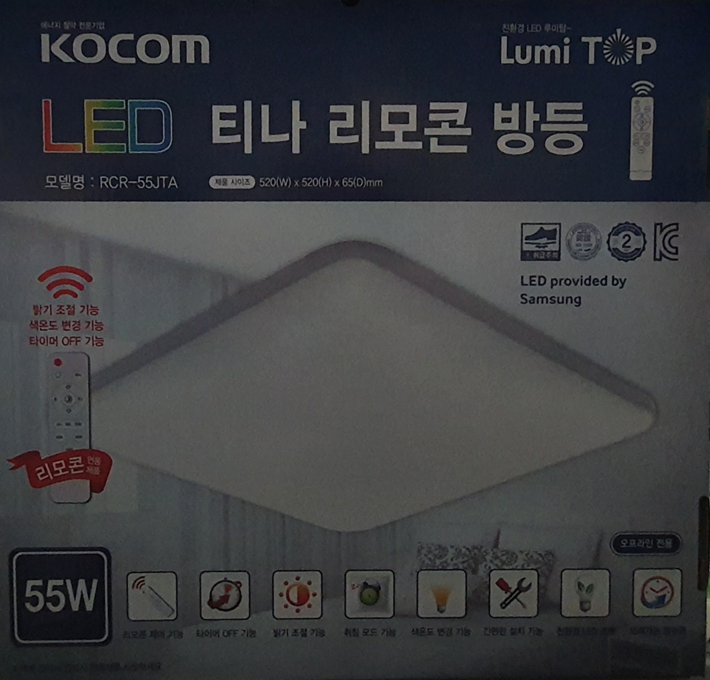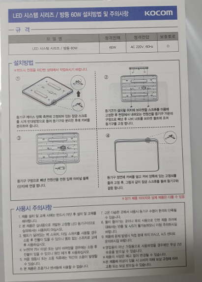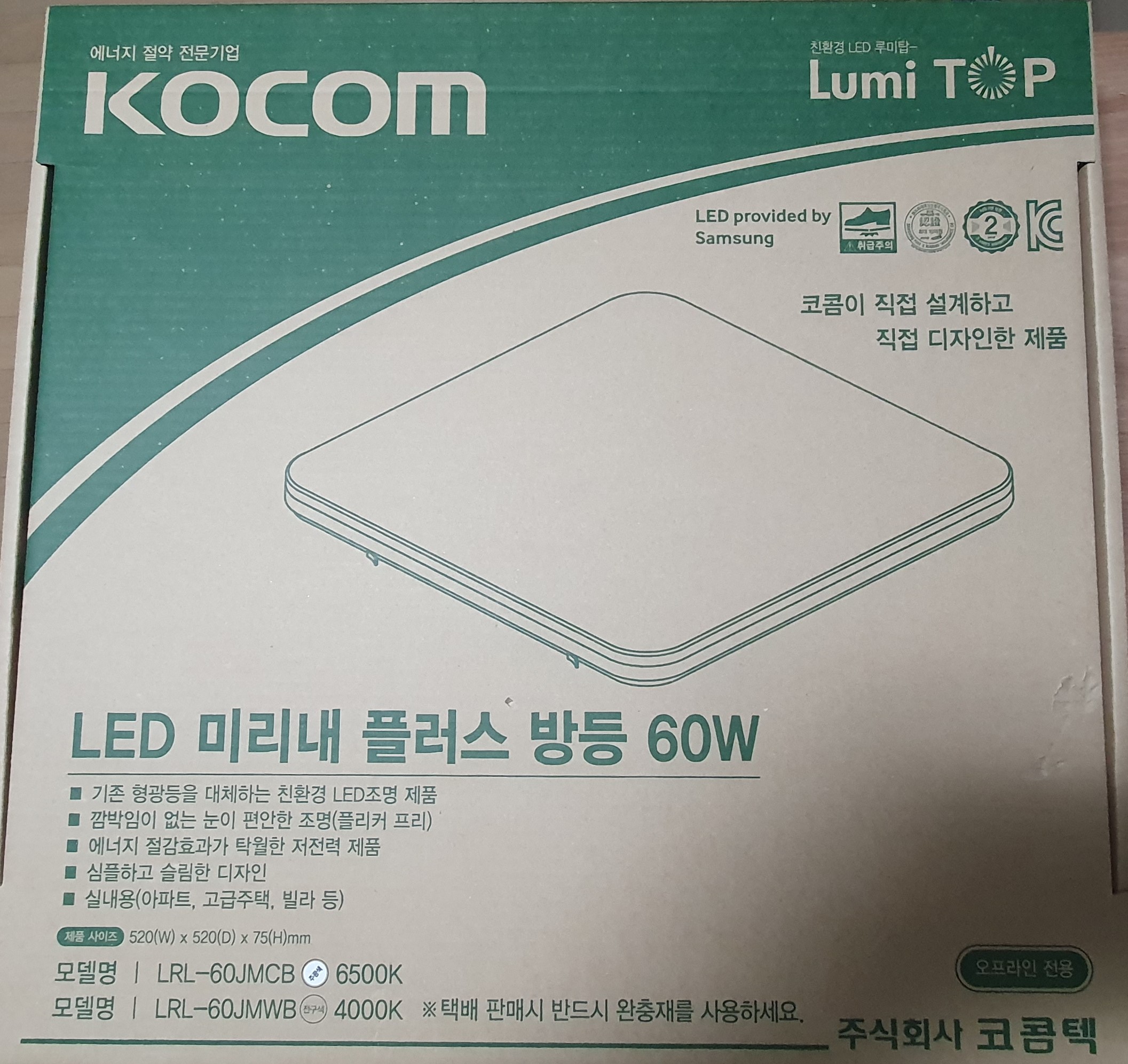 에이스 홈의 직원분이 코콤사의 60w led가 가격도 저렴하고 삼성 반도체를 썼다고 해서 구매하였습니다. 다른 등들은 50w 정도인데 이건 60w라 더 밝다고 하네요