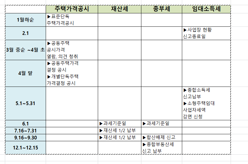 오늘은 주택과 관련된 세무일 정 및 세금 신고 일정에 대해서 알아보려고 합니다.