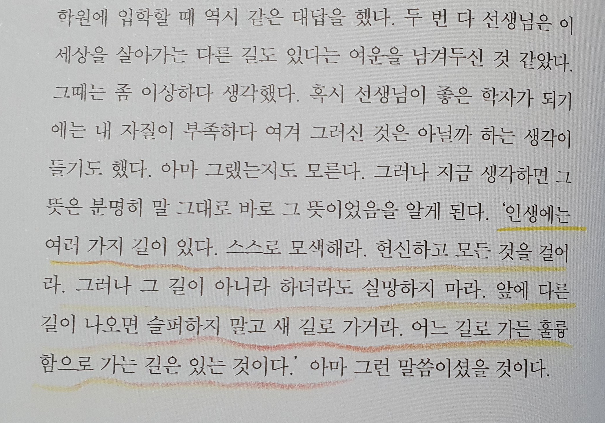 인생에는 여러 가지 길이 있다. 스스로 모색해라. 헌신하고 모든 것을 걸어라. 그 길이 아니라 하더라고 실망하지 마라.