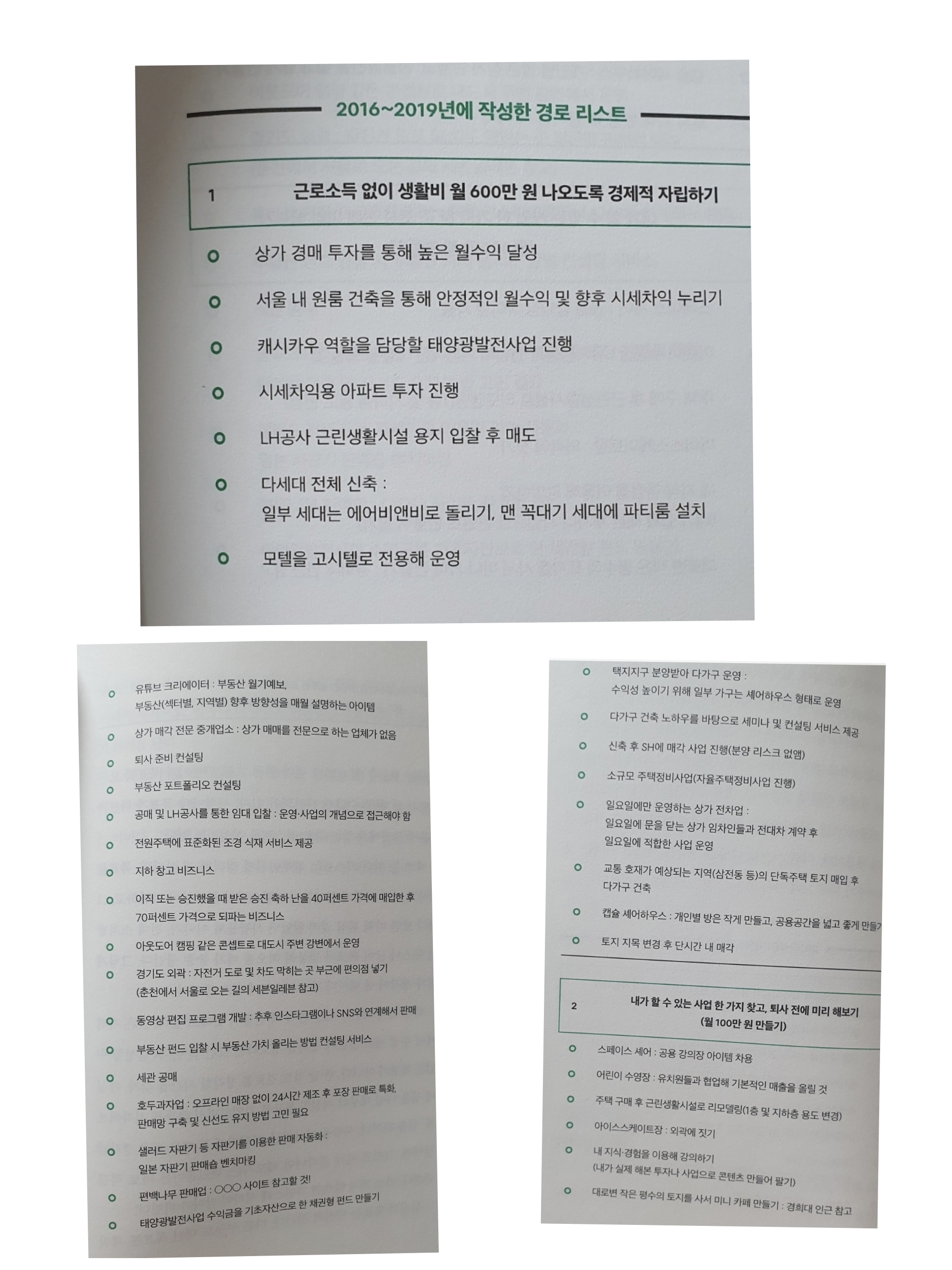 생각실현가님도 사업소득에서 월 100, 부동산 투자에서 500을 목표로 하였었다. 내 전략과도 크게 일치하는 부분이 있었다.
