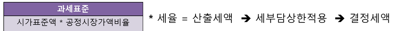 주택분 재산세는 시가표준액과 공정시장가액비율을 곱한 '과세표준'에 다시 세율을 곱하여 세약을 산출합니다.