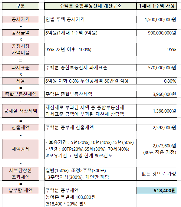 *1세대 1 주택자는 9억 원, 법인은 공시 가격 전체에 대해 과세