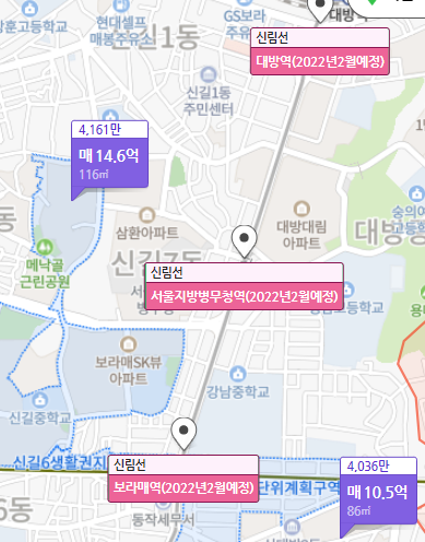 지역은 2022년에 오픈되는 신림선 호재가 있습니다. 여의도 출퇴근이 아주 용이해질 것 같습니다.