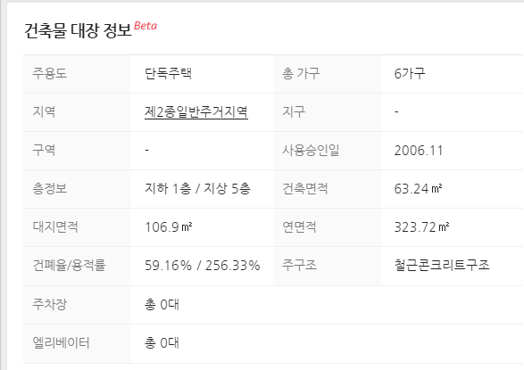 토지면적 58.88평, 건물면적 97.92평으로 지하 1층 ~5층 건물로 되어 있었습니다.