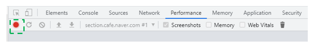 성능 분석은 웹페이지 실행되고 있을 때 특정 구간을 녹화한 후 그 구간을 분석하는 방식으로 이루어집니다.