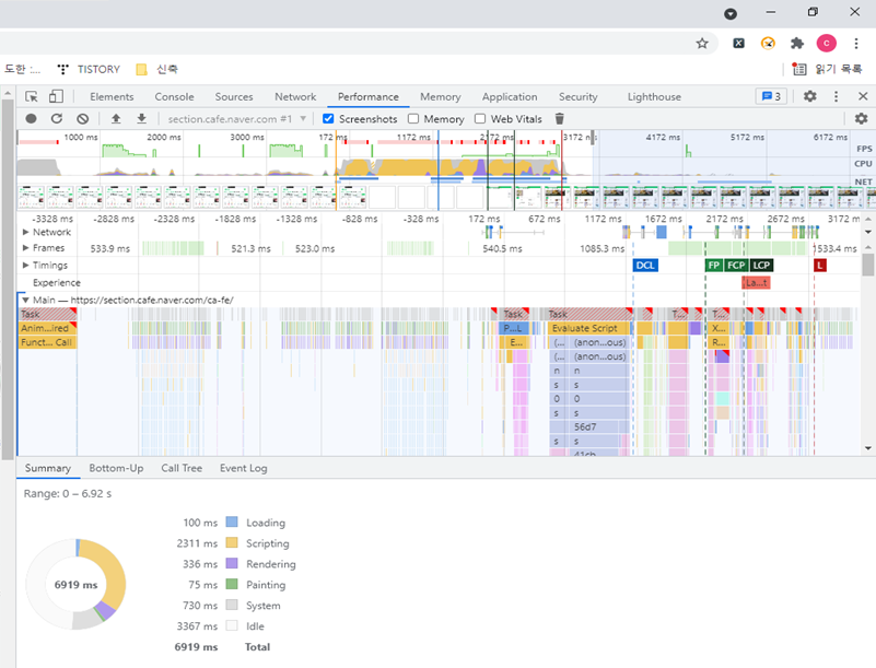 크롬의 Performance 기능을 이용해 성능 진단을 하려면 많이 해보면서 익숙해져야 될 것 같습니다.