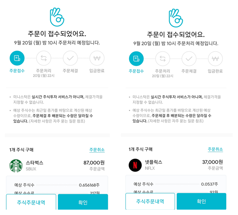 한국투자증권 미니에서는 점단위로 해외주식 매수가 가능하기에 제가 평소 관심 있어하는 종목을 꾸준히 사보기로 했습니다. 고놈들은 스타벅스와 넷플릭스