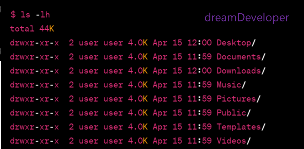 total은 현재 디렉토리의 모든 파일과 디렉토리의 총 크기입니다. 각 파일 및 디렉토리의 크기는 두 번째 열에서 읽기 쉬운 형식(KB, MB 등)으로 출력됩니다.