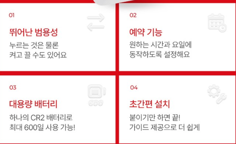 세탁기나 건조기 등에 설치하여 원격으로 ON OFF도 가능한 장점이 있습니다.