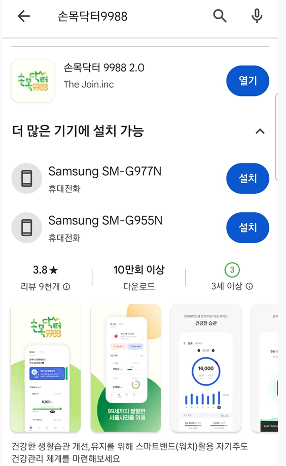 손목닥터 9988 2.0 앱을 설치합니다.